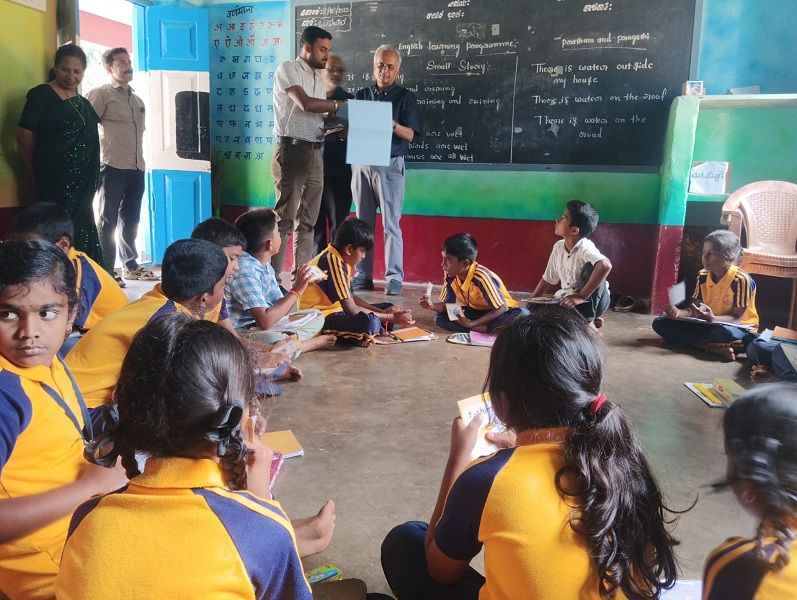 Shri Satish Rao, Founder of Pragati Organization; Shri Bhaskar Kalale from ECRM Organization; and Shri Jagadeesh from Pratham Mysuru visited the English program being conducted at Kodagahalli School, T. Narasipura on 8th October 2025. They observed classroom sessions and collected feedback regarding the program from the school Headmaster, teaching staff, Pratham Mysuru volunteers and parents.